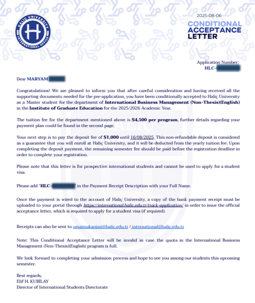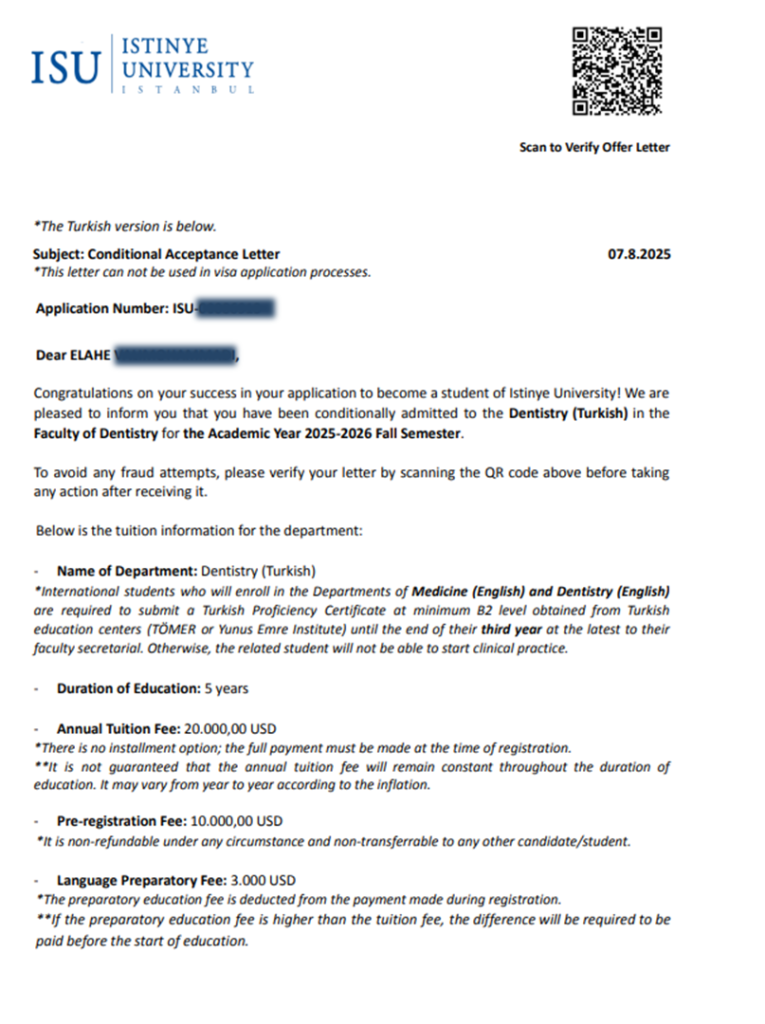 بعد از پذیرش دانشگاه، با ارائه مدارک به اینترنشنال دانشگاه کارت اقامت دانشجویی (İkamet) دریافت میکنید.
